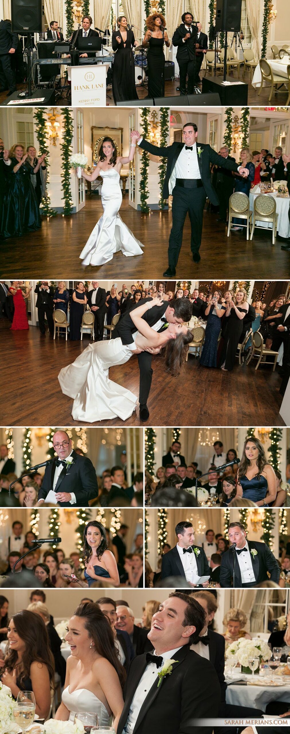 The energy continued at The Colony Club where everyone partied the night away. Best man and Maid of honor told hilarious toasts that seemed more like “roasts” and had everyone in tears from laughter. There were fun candid moments, large Fairfield University group photo and the bride and groom dipping were some of the many highlights on the dance floor with great live music by Kenny Ford of Hank Lane Music.